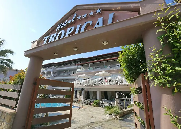 Tauchen Sie ein in den Charme von Chaniotis im 4-Sterne-Aparthotel Tropical Chaniotis, das nur 8 Minuten zu Fuß vom Hanioti Beach entfernt liegt und Ihnen Unterstützung bei Tourenplannung/Ticketkauf bietet, damit Sie das Beste aus Ihrer Reise machen können. Das Hotel bietet ein Restaurant und liegt in 3 km Entfernung vom Strand von Pefkochori in Chaniotis.